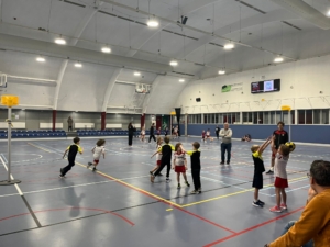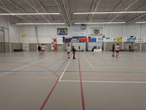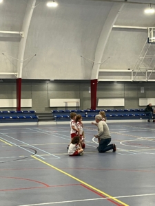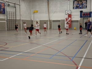 Hierna wist Maxim 3x te scoren. Bij 4-1 mocht Badhoevedorp dus een superspeler inbrengen. Niet lang, want hij wist zelf de 4-2 te scoren. Maxim wist weer te scoren en dus kwam de superspeler er weer in en eigenlijk kon hij er weer gelijk uit, want hij wist de 5-3 te scoren. Madieke maakte de 6-3 en dat werd de stand na 1 kwart. In het 2e kwart ging Maxim even naar de kant. Evie kwam er nu in. Het werd een spannend kwart met kansen voor beide teams. Evie wist de 7-4 te scoren en de 8-6. Badhoevedorp kwam zelfs nog terug tot 8-7. Dat werd de ruststand. In het 3e kwart mocht Madieke even naar de kant en kwam Maxim er weer in. We zagen toen een soort Maxim show met veel rake afstandsschoten. Maxim met de 9-7 en Evie met de 10 en 11 -7. De 12 en 13 -7 waren weer van Maxim. Dit kwart geen doelpunten van Badhoevedorp, hoewel ze wel met een superspeler speelden. In het laatste kwart ging Claire naar de kant. Minder doelpunten dit kwart.