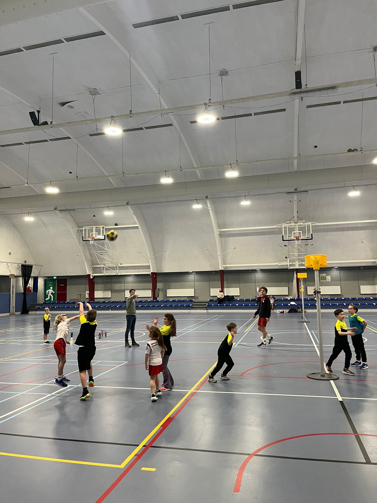 Hierna wist Maxim 3x te scoren. Bij 4-1 mocht Badhoevedorp dus een superspeler inbrengen. Niet lang, want hij wist zelf de 4-2 te scoren. Maxim wist weer te scoren en dus kwam de superspeler er weer in en eigenlijk kon hij er weer gelijk uit, want hij wist de 5-3 te scoren. Madieke maakte de 6-3 en dat werd de stand na 1 kwart. In het 2e kwart ging Maxim even naar de kant. Evie kwam er nu in. Het werd een spannend kwart met kansen voor beide teams. Evie wist de 7-4 te scoren en de 8-6. Badhoevedorp kwam zelfs nog terug tot 8-7. Dat werd de ruststand. In het 3e kwart mocht Madieke even naar de kant en kwam Maxim er weer in. We zagen toen een soort Maxim show met veel rake afstandsschoten. Maxim met de 9-7 en Evie met de 10 en 11 -7. De 12 en 13 -7 waren weer van Maxim. Dit kwart geen doelpunten van Badhoevedorp, hoewel ze wel met een superspeler speelden. In het laatste kwart ging Claire naar de kant. Minder doelpunten dit kwart.